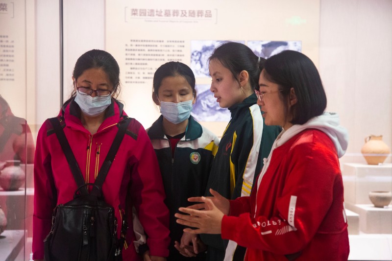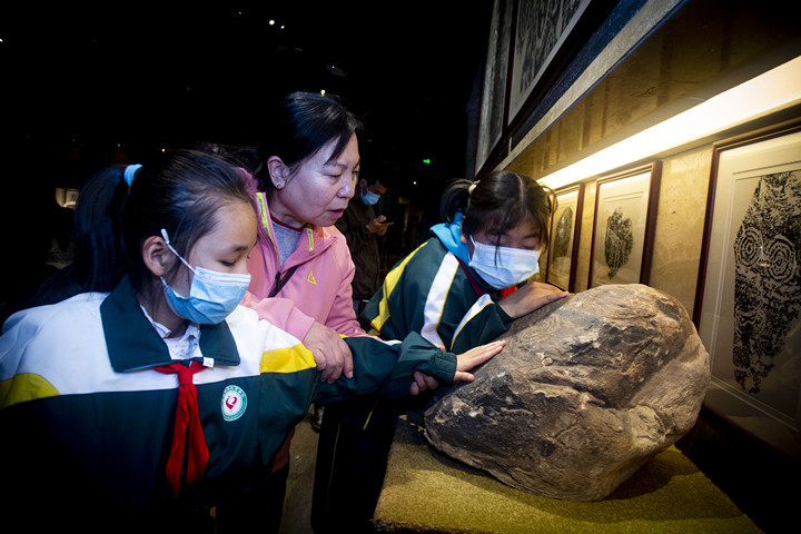 在宁夏博物馆讲解员的带领下,大家近距离的聆听“历史”,触摸“历史”、感受“历史”。全体师生依次参观了石刻史书“宁夏岩画”展、红旗漫卷“宁夏革命文物”展和朔色长天“宁夏通史”展。参观过程中,老师们有的不停地摆动手势,给听障学生进行翻译,有的抓着视障学生的手去轻轻触摸和感知“历史”,从学生惊叹的言语中可以感受到,此刻,世界在他们心中是那么美好,每个人的脸上都洋溢着兴奋、激动的表情。一幅幅珍贵的历史照片,一件件真实的革命文物,让大家感受到了革命者艰苦卓绝和如今来之不易的幸福生活,给师生们上了一堂生动的历史课。