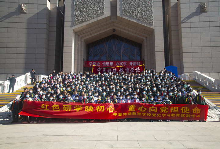 为庆祝中国共产党成立100周年,引导学生听党话,跟党走,教育学生做到学史明理、学史增信、学史崇德、学史力行,弘扬党的光荣传统和优良作风,培养学生爱党爱国的情怀,4月28日上午,宁夏特殊教育学校组织全体师生到宁夏博物馆进行了党史学习教育实践活动。