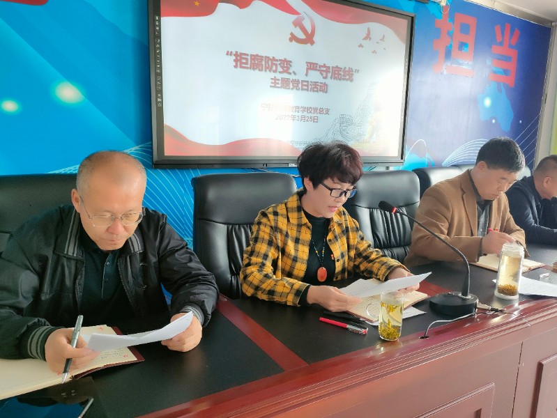 为进一步引导党员干部秉承廉洁从政初心,肩负立德树人使命,激励党员提高廉洁自律意识,筑牢思想防线,把党风廉政各项要求内化于心、外化于行。3月25日,宁夏特殊教育学校党总支开展了廉政警示教育周系列活动之“拒腐防变,严守底线”主题党日活动。